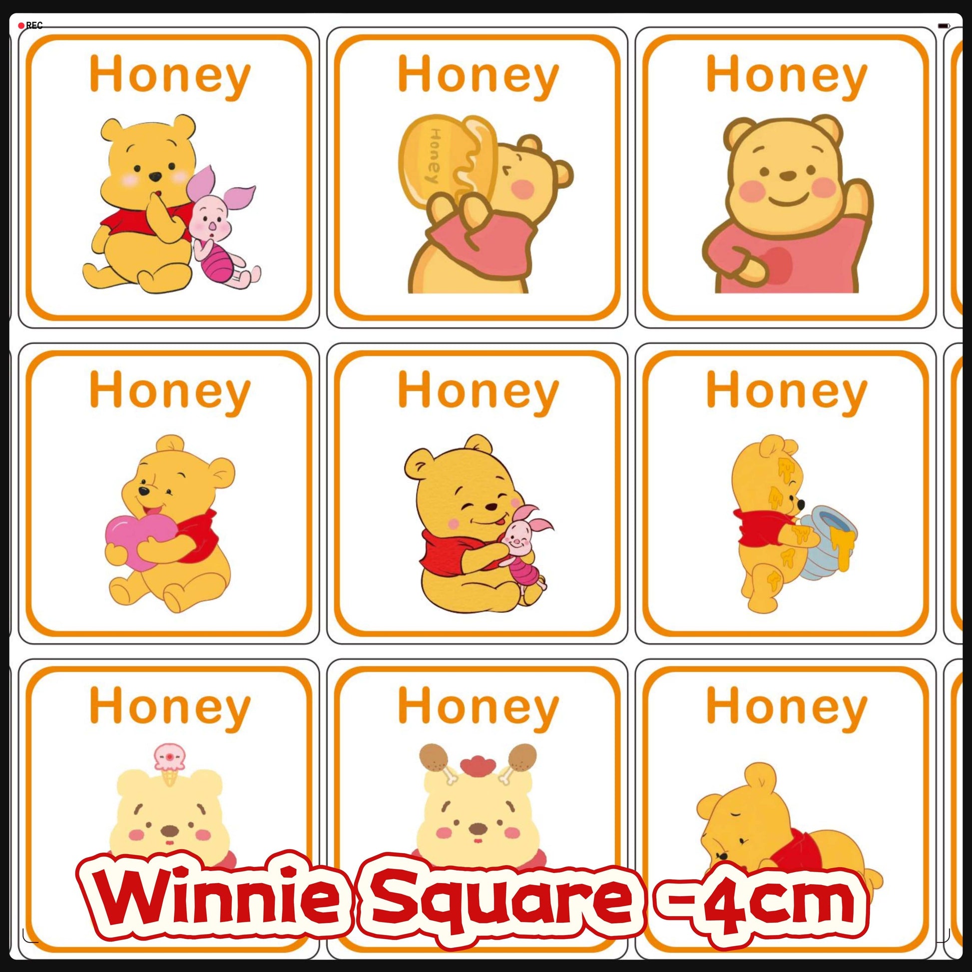 Winnie Square 4cm Acrylic Charms for DIY match game-open in live